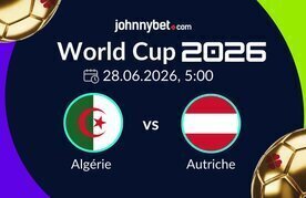 Comment placer un pronostic Algérie vs Autriche ? Sur qui parier Algérie vs Autriche ? La 3e et dernière journée du groupe J de la Coupe du monde 2026 va nous offrir une belle affiche entre l’Algérie et l’Autriche. D’un côté, les Fennecs rêvent de refaire l’exploit de se qualifier pour les 1/8es de finale d’un Mondial. De l’autre, le groupe de David Alaba retrouve une phase finale pour la 1ère fois depuis 1998. Le rapport de force est très équilibré entre les 2 équipes, ce qui pourrait forcer le prono match nul Algérie vs Autriche. Cependant, le fait que ce soit une 3e journée de phase de poules pourrait pousser les 2 nations à se surpasser pour décrocher une qualification. Malheureusement, les cotes ne sont pas encore disponibles. Observons ensemble les différentes cotes Algérie vs Autriche.