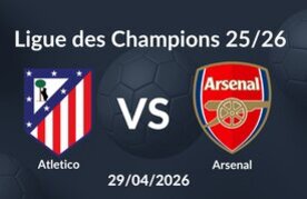 La demi-finale aller Atlético Madrid - Arsenal aura lieu au Wanda Metropolitano le 29 avril à 21h dans le cadre de la Champions League. Pour placer des pronos Atletico vs Arsenal, nous vous recommandons de suivre cette demi-finale en direct sur 1XBET, Betwinner, bet365 ou Melbet (avec code promo Melbet). Ces plateformes spécialisées foot proposent une gamme complète de statistiques avancées et de cotes attractives pour maximiser vos gains. En plus du service de streaming, vous pouvez profiter d’une option de live betting intéressante pour adapter vos paris en fonction du déroulé du match.