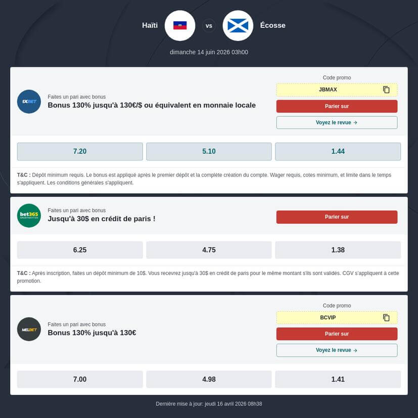 4.3 ⚽ Quels sont les meilleurs sites pour parier sur Haïti vs Écosse ?