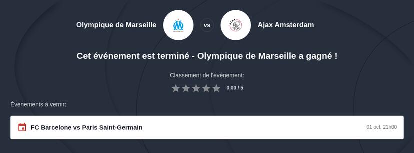 2. Meilleures offres de paris sur Marseille vs Ajax