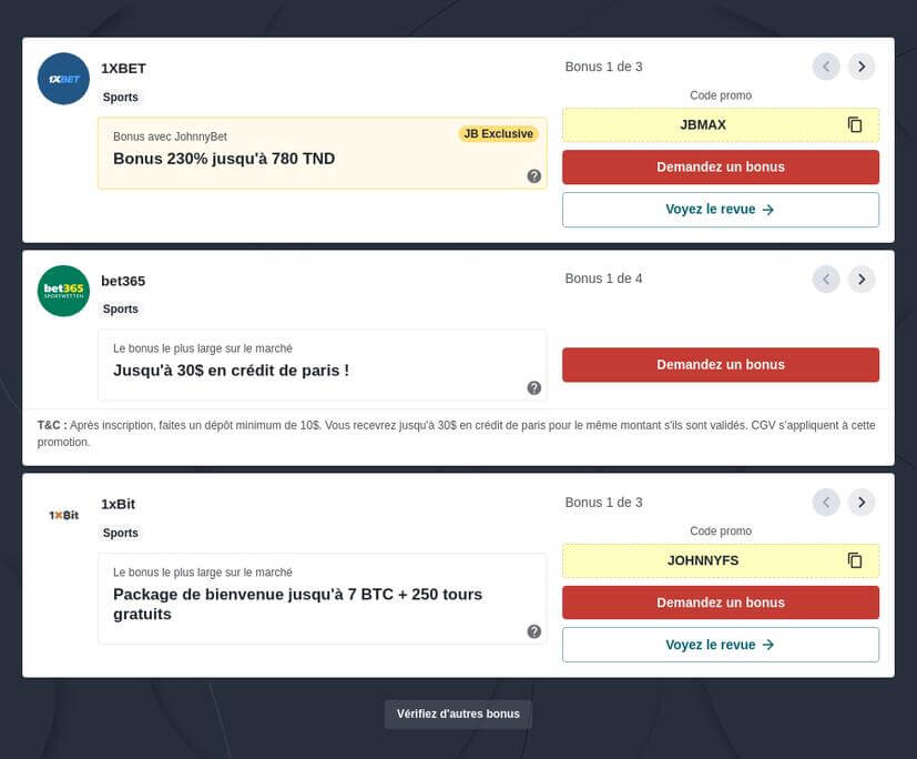 1XBET : Pour sa réactivité sur le Live Betting et ses analyses statistiques intégrées. Inscrivez-vous avec code promo de 1XBET pour profiter du bonus VIP pour les paris sportifs.