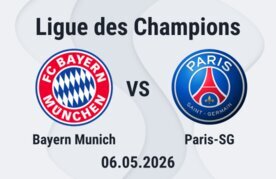 La demi-finale retour de Ligue des champions entre le Bayern Munich et le Paris Saint-Germain se disputera le mercredi 6 mai 2026 à 21h à l’Allianz Arena (Allemagne). Nous vous recommandons de suivre en direct PSG vs Bayern sur 1XBET, bet365, Betwinner et Melbet.