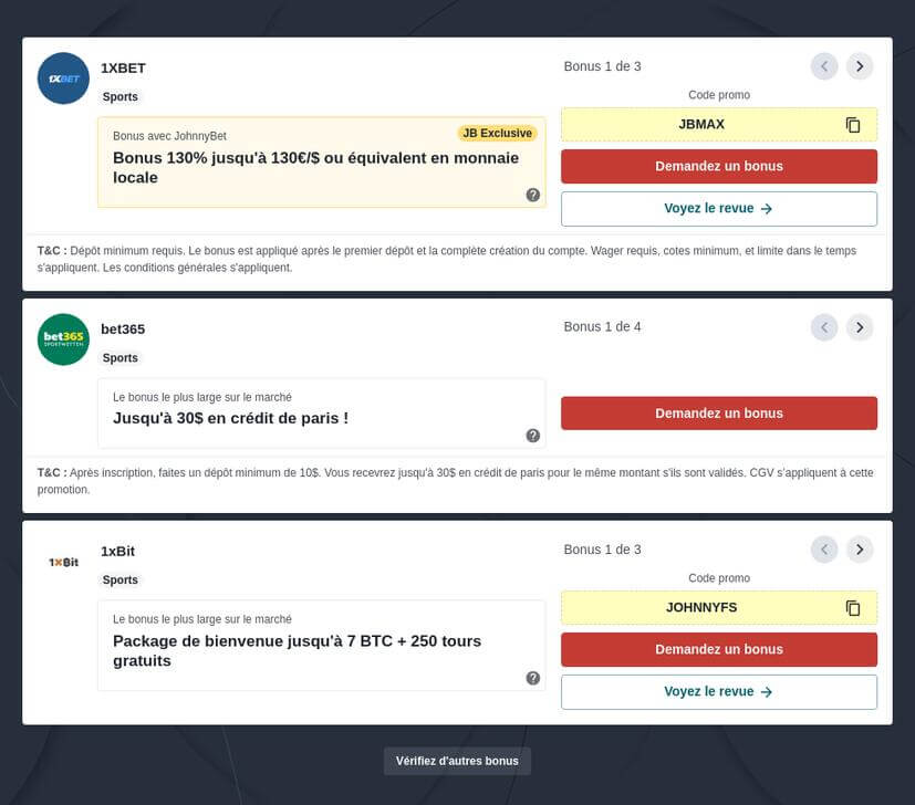 Bookmakers avec les meilleurs cotes